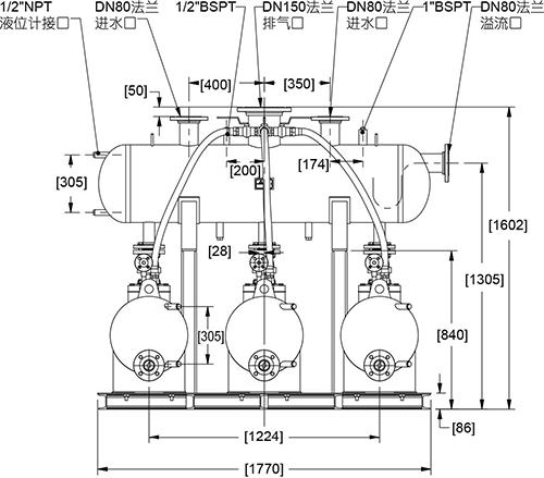 凝結水回收機組 型號:QJ-101-4 重量:750kg 最高允許壓力及溫度:1.0Mpa/210℃ 最大工作壓力:0.85Mpa 最高工作溫度:200℃接口法蘭標準:HG/T20592PN1.6 外形尺寸:見技術方案 |
